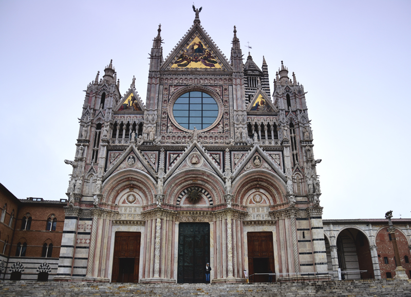 Największą atrakcją Sieny, jedną z większych w Toskanii jest Katedra w Sienie (Duomo). Będąc tu trzeba powiedzieć, że średniowieczni Włosi mieli rozmach. Piękno tego budynku, który jest nieco podobny do Katedry Santa Maria del Fiore we Florencji, po prostu zachwyca. Idąc dalej wąskimi uliczkami docieramy do murów kościoła Sant’Agostino. Stamtąd dostrzegamy po raz pierwszy pofalowane toskańskie krajobrazy.