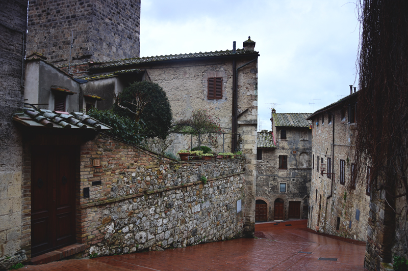Wracając do „średniowiecznego Manhattanu”. Warto pokręcić się po San Gimignano. Nie wiem jak wygląda to wszystko przy dobrej pogodzie, ale my mieliśmy okazję zwiedzać je praktycznie sami. Inni turyści się gdzieś pochowali, więc mieliśmy mieścinę praktycznie tylko dla siebie.