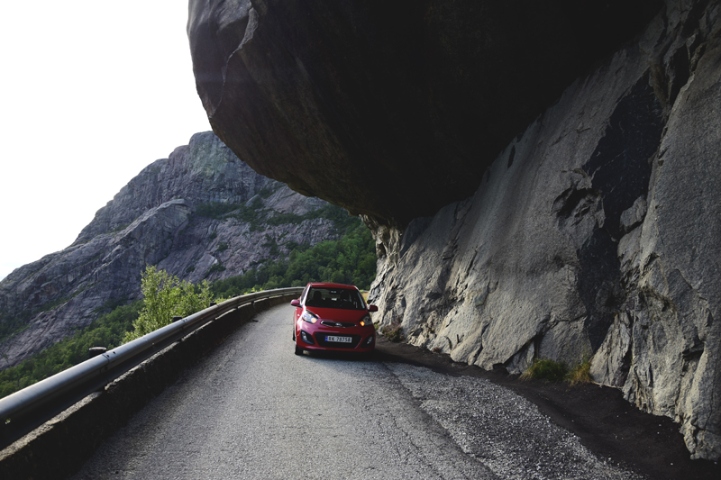 10:00 – meldujemy się na parkingu przed Preikestolen. Przyjemność postawienia tam auta kosztuje nas (sic) 200 NOK, czyli niewiele mniej niż stówę. Można spróbować pokusić się o postawienie samochodu wcześniej niż na samym parkingu, ale nadłożyć trzeba minimum 2 kilometry spacerem.